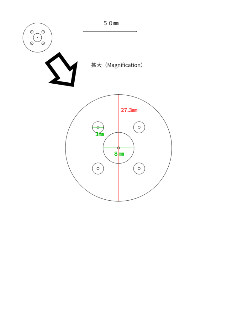 先ほど使用した模式図は穴が全部真っ黒で中心がわかりづらく、微妙にずれていたこともあって、歪んでいました。
