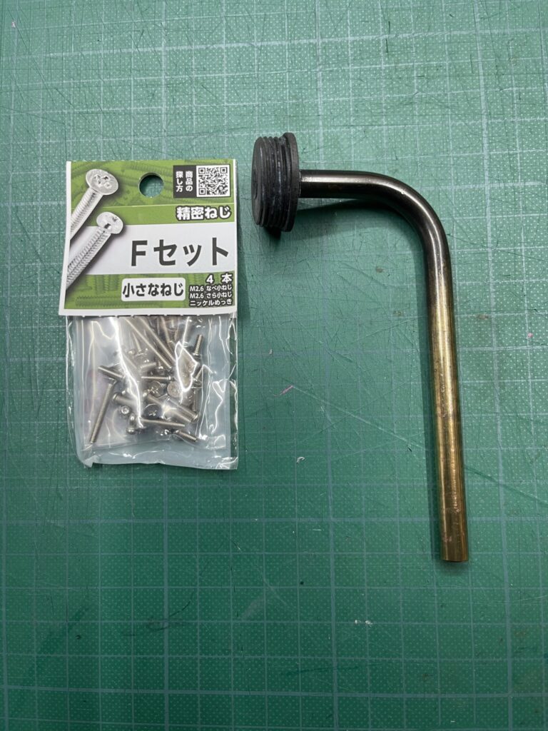 試しに使ってみると、ワッシャーが邪魔して、金属パイプが中心の穴を通らない。