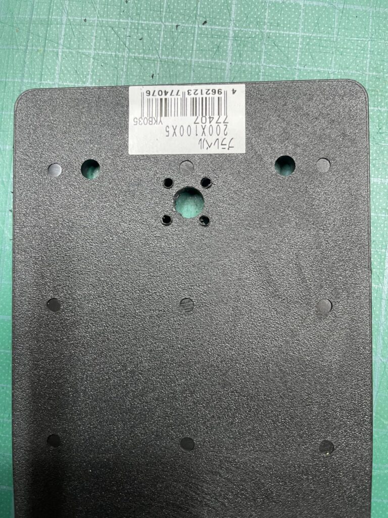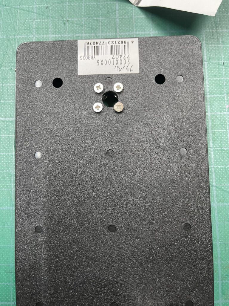 手ごろな厚さ5㎜のプラスチック板と4つの穴に入りそうなネジを買ってきました。