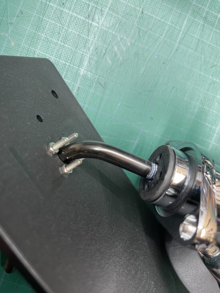 - Assembly: Insert the screws into the plate and secure them with nuts. (Remove washers if they interfere with the center pipe).